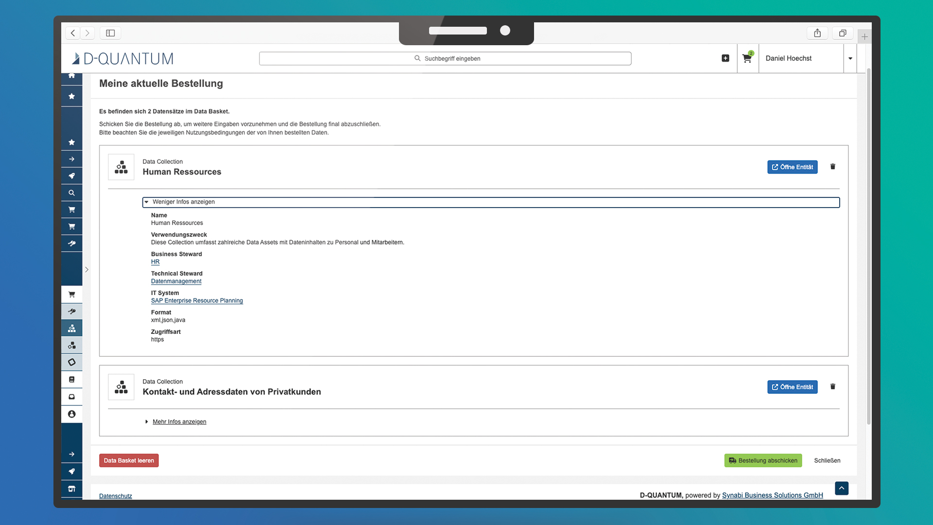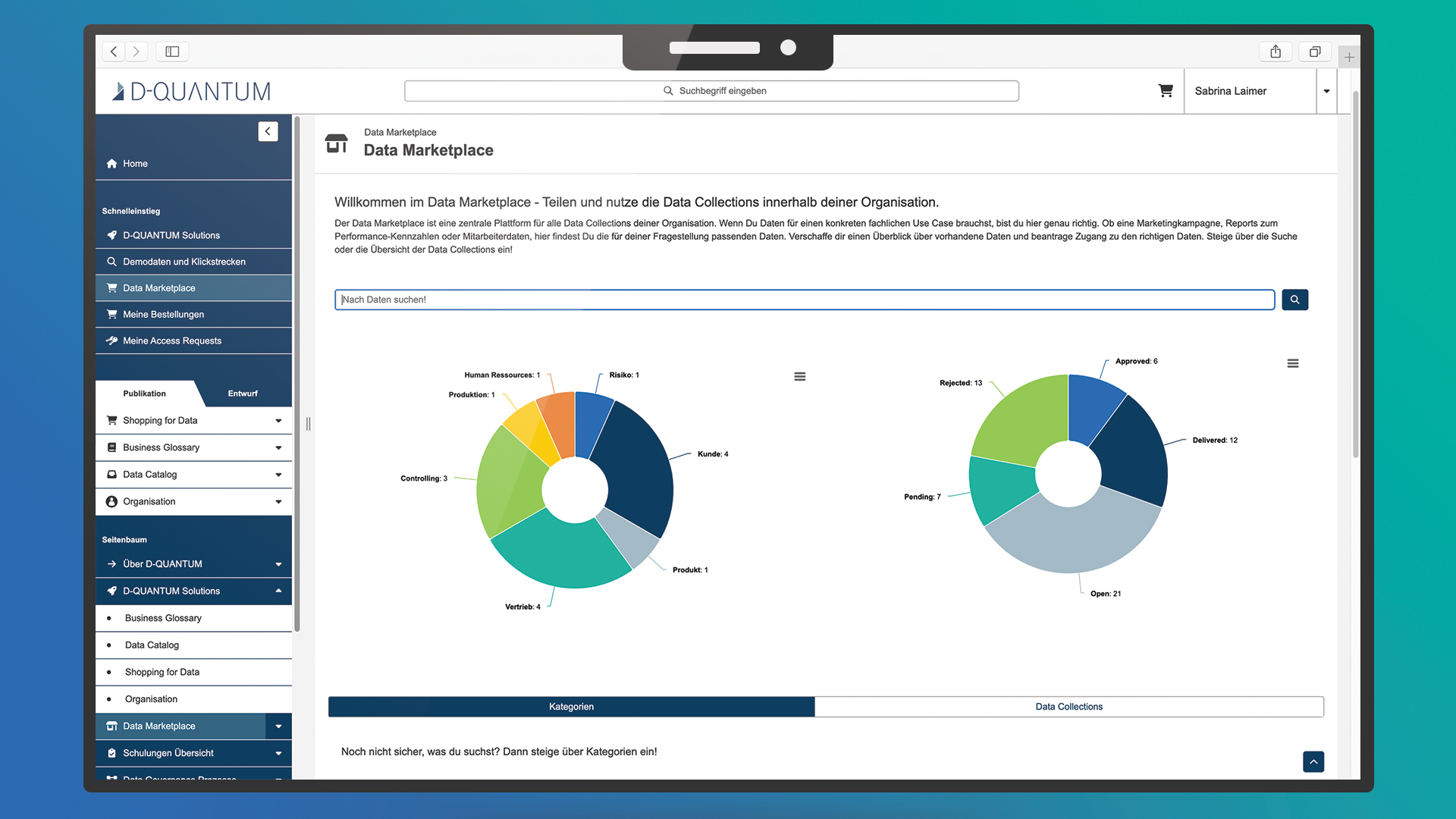 Mit D-QUANTUM haben Sie die Möglichkeit für Sie relevante Daten schnell zu finden und Zugriffsanfragen zentral zu stellen. Dabei sorgt D-QUANTUM für Transparenz und Compliance von Datenprodukten in Ihrem Unternehmen. Mit einem intuitiven Bestellprozess werden Suchaufwände reduziert und die Bereitstellung der Daten deutlich beschleunigt.