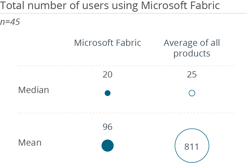 • Fast die Hälfte der Kunden, weit mehr als die Wettbewerber, haben sich für Fabric entschieden, weil sie bereits eine Beziehung zu Microsoft haben. Diese bestehenden Beziehungen tragen auch zu einem höheren Grad an Produktkenntnis bei den Anwendern und zu stärkeren Beratungspartnerschaften als bei anderen Anbietern bei.