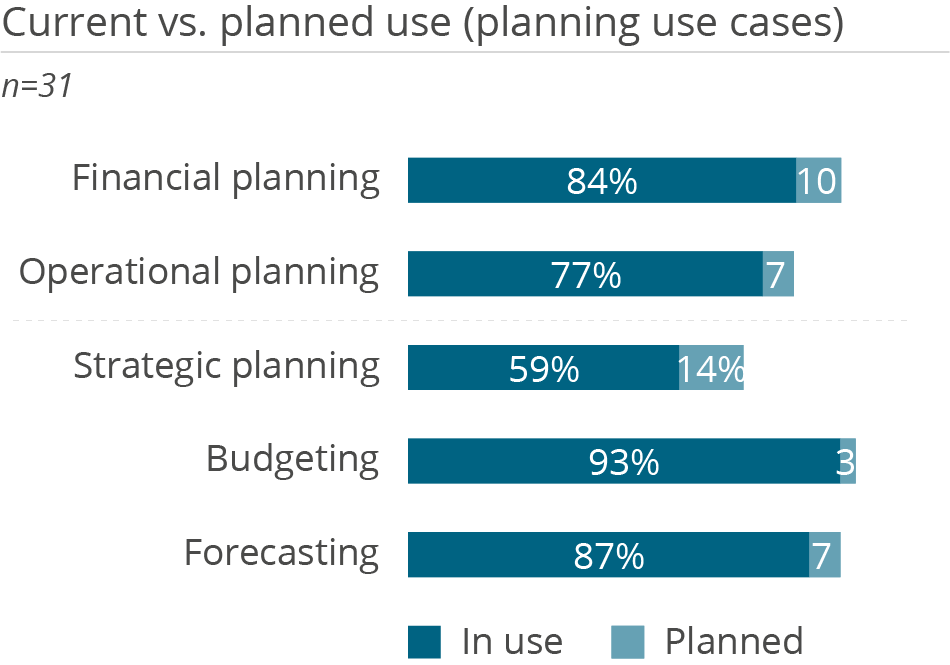 • Die Ergebnisse aus The Planning Survey zeigen, dass die Performance für einige Kunden ein Problem darstellt. In Umgebungen mit großen Datenmengen und vielen gleichzeitigen Benutzern sollten Unternehmen die Performance von Unit4 FP&A evaluieren.