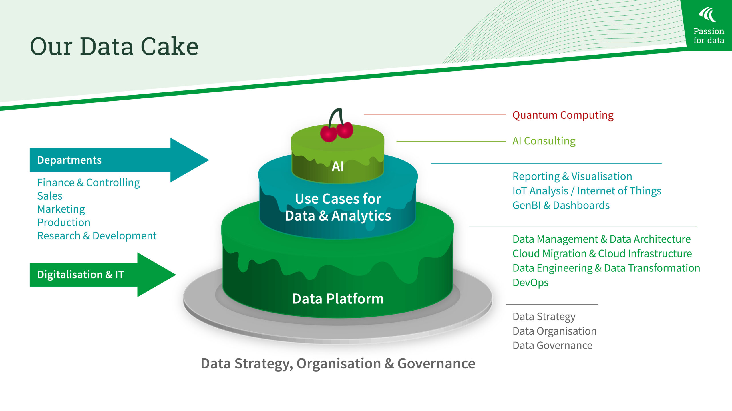 Hier erhalten Sie einen Überblick über unser Leistungsspektrum anhand unseres Data Cakes