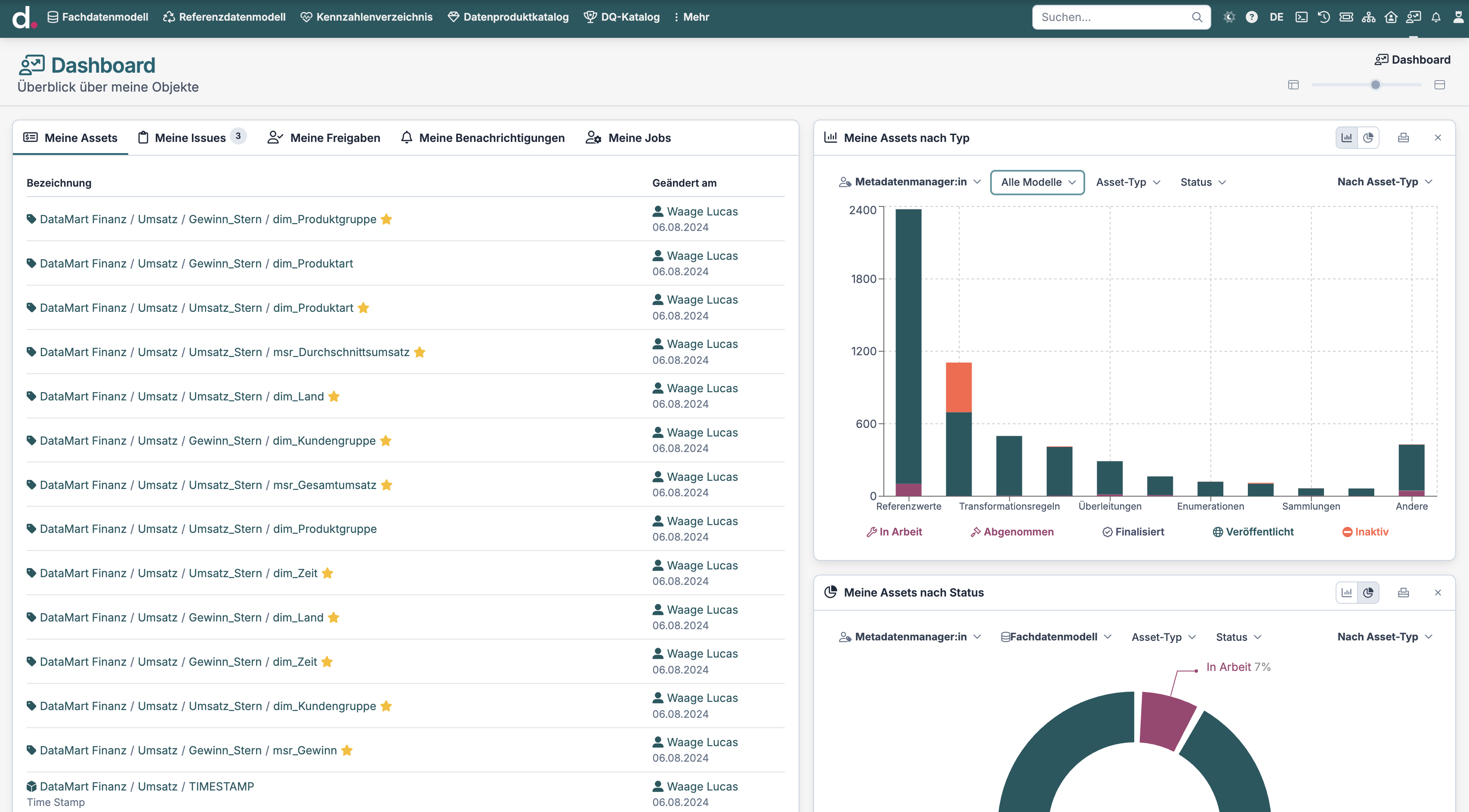 Die Maturität des Prozesskatalogs und des Data Product Catalogs ist eher noch gering und hat eine enorm hohe Flughöhe. Hierbei kann es mitunter auch daran liegen, dass dazu noch keine Konzepte für die saubere Nutzung dieser Katalogtypen definiert wurde.