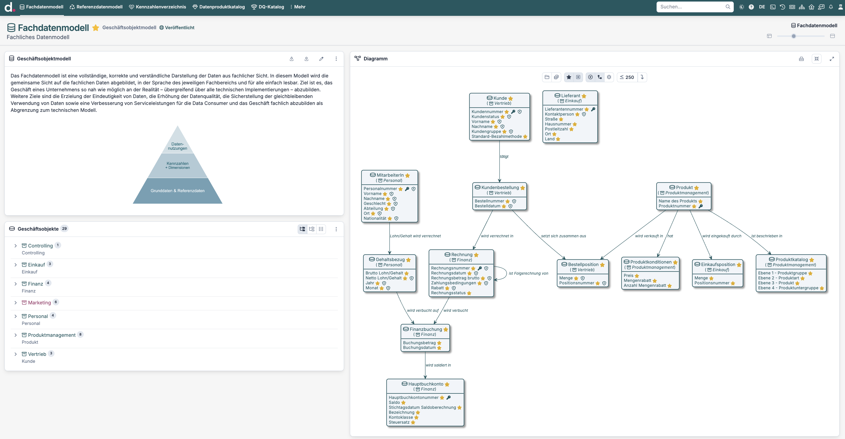 Umfangreiche und klare Darstellung der Datenlandschaft des Unternehmens.