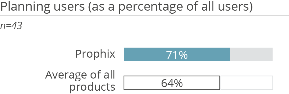 • The Planning Survey 25 reveals a high level of customer satisfaction with Prophix, particularly with the length of implementation projects, price to value, vendor support, sales experience with the vendor and also the platform’s self-service capabilities and ease of use.