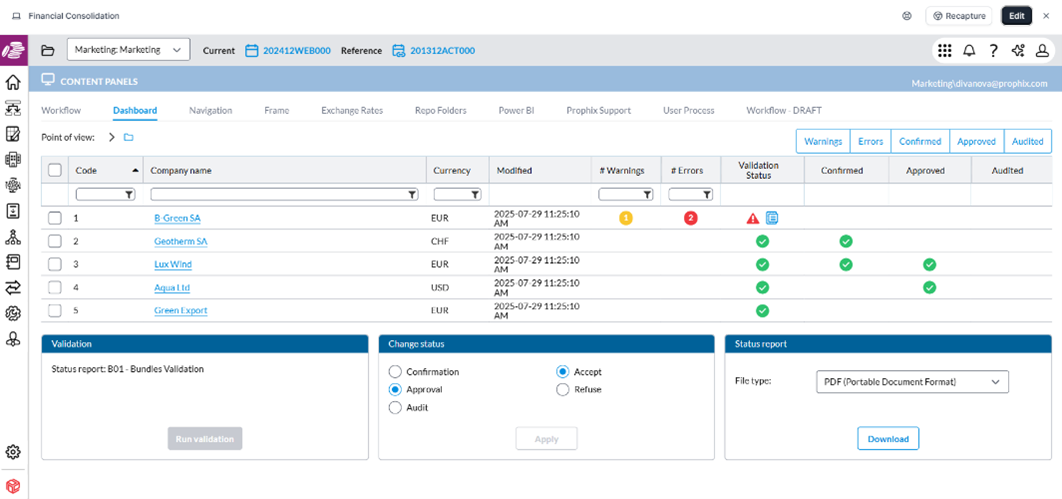 Integrated, cloud-based performance management platform for mid-sized companies focused on planning, budgeting and forecasting, reporting and analysis. Comprehensive functionality for financial consolidation and close, management reporting, intercompany reconciliation as well as specialty solutions for IFRS 16 and iXBRL are available with the integration of Sigma Conso.