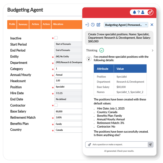 Adaptability, speed, accuracy, dashboarding, reduced budgeting time from 1 month to 1 week.