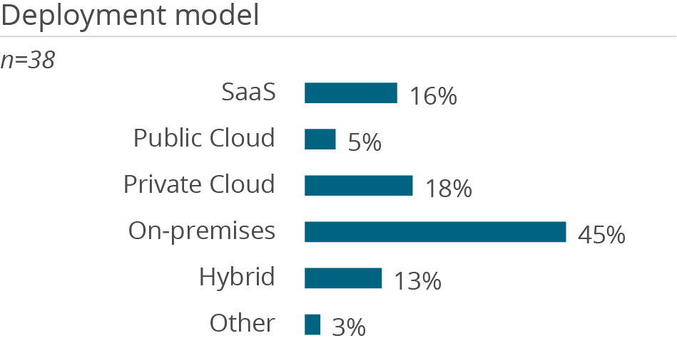 • The system requires highly specialized knowledge for implementation, development, and ongoing maintenance. 35% of users report high complexity in administration and operation as a problem, which is significantly higher than the average (16%).